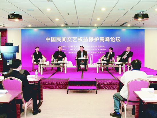 本刊讯 12月5日,由中国民协、上海市文联主办,上海市民协、上海市文学艺术著作权协会承办,浦东新区陆家嘴街道办事处、上海市文联艺术团协办的中国 权益保护高峰论坛在上海举行。论坛围绕 的传承与保护分设若干个议题,并邀请知名 研究专家、法律学者、司法实务专家、知名艺术家、文艺单位和文化企业代表等参会,就各议题做主旨演讲,并进行了学术研讨。
