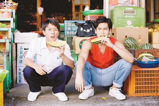 于是,相较于毫无新意的打打杀杀,影片对体操动作的展示显得简练而优美:片头字幕时,单杠上挥洒自如、翻转腾飞的阿信;儿时阿信过渡到少年阿信,“跳马”动作的逐格分解;“水闸门”上借助街头栏杆熟练的空中翻腾,台球厅里球案上似乎随意的鞍马动作,舞厅里“斗舞”时骄傲的空翻、扫腿;尤其是夜深人静时潜回体操馆里,偷偷练习动作的喜悦……在导演的镜头中,体操呈现了另外一种力与美,特别是随着剧情的推进,体操与武打、跳舞等元素的结合,显得别有一番乐趣。