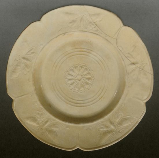邢窑瓷器做工精细,底足像车床旋削过一般,棱角分明、规范如月,造型和装饰亦十分丰富,印花、刻划花、雕塑、镂空等,手法多样。2011年12月20日至2012年3月20日,在邢窑遗址正式发掘30周年之际,北京艺术博物馆举办“千年迷梦——邢窑陶瓷艺术展”,展出古代邢窑瓷器200余件。图中这件邢窑博物馆藏唐代白釉“盈”字款印花蝴蝶纹盘,高4厘米、口径17.1厘米、底径8.5厘米,葵口,宽平沿,沿内模印蝴蝶纹,折腰,平底,中心部印有花瓣纹,外侧有三道凸弦纹,高圈足,足心刻“盈”字款,胎质细腻,通体施白釉,釉色白中泛黄,造型大方规矩,为仿金银器瓷器精品。