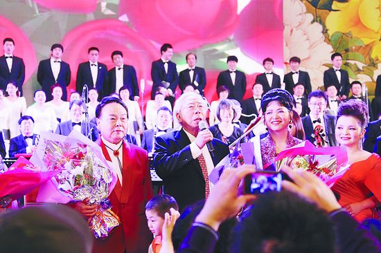 柳石明、吕远、耿莲凤、吴碧霞(从左至右)接受献花 孔垂义 摄