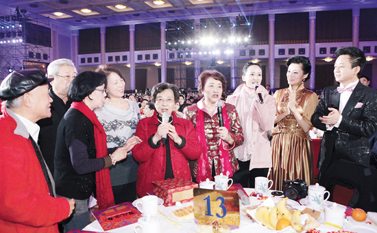 “鲜红的太阳给我生命的光辉,我饱含热泪一生一世与你相随”,联欢会在宋祖英演唱的《中国万岁》中被推向高潮。动情的歌声唱出了中华儿女心中的眷恋与热爱。整台晚会老歌新曲动人心弦;台上台下真情交融;前辈艺术家与后起之秀济济一堂,共同表达着对伟大祖国的深深祝福和对龙年盛世的美好祈愿。