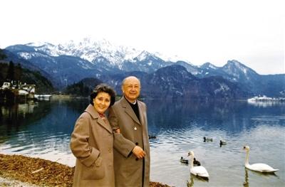 1987年,钱学森、蒋英夫妇在德国黑山风景区留影。