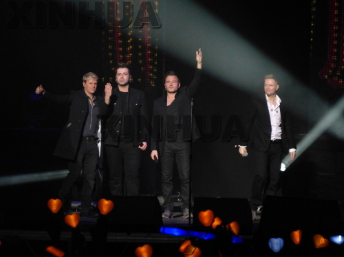 二月二十二日,风靡全球的爱尔兰男子歌唱团体西城男孩二○一二至尊金曲世界告别巡演北京演唱会在万事达中心上演。西城男孩成立于一九九八年,是世界上最为成功的男子歌唱团体之一。他们共有十四首单曲高居英国单曲排行榜首位,数量排名历史第三位,仅次于猫王和披头士。西城男孩在世界范围内销售出四千万张专辑,其中包括七张超白金专辑,演唱的《You Raise Me Up》《World Of Our Own》等金曲被广为传唱。去年十月二十日,西城男孩在官网上发布了解散声明。新华社发 丁明 摄