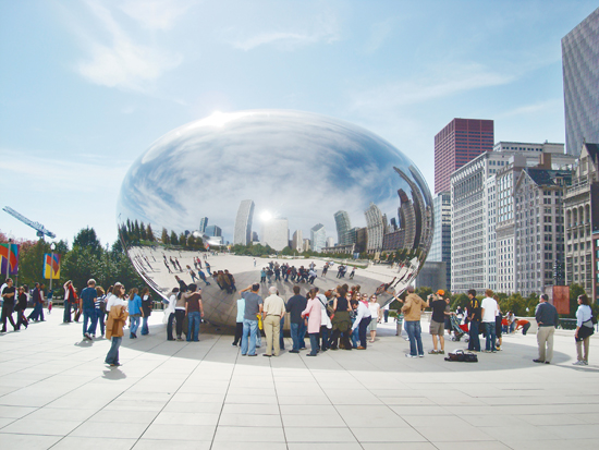 美国芝加哥千禧广场镜面球体雕塑 邹文 摄