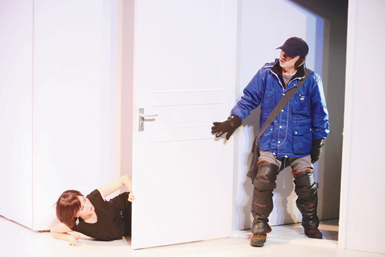 这部“三一律”的戏,故事发生地在女白领海伦的家中。戏开始时,大幕并未完全拉开,观众看到的是女主人公的客厅和梳妆台,随着剧情进展,大幕逐渐拉开,屋子的全貌才映入观众眼帘,到后来,观众发现,白色的墙壁后面,居然还有厨房、卧室和卫生间。这样的舞美设计,用的是剥洋葱的概念。“像剥洋葱一样,随着一层层剥开,观众也在逐渐接近这个女人的内心。从一开始她等待爱人的独白,到后来被拒绝要自杀,到最后穿上黑婚纱站在床上时,你会发现她跟你刚开始认识的那个人很不像。”黄盈告诉记者,“剥洋葱的概念,就是在对一个完整东西的不断拆解过程中,使人越来越看到真相的内核。”