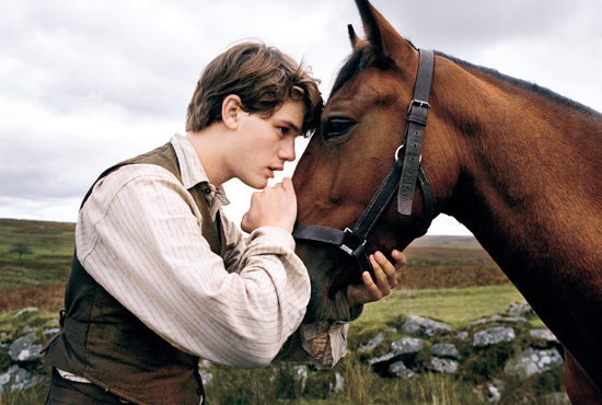 《战马》改编自英国作家迈克·莫波格1982年发表的儿童文学作品,小说曾获得惠特布莱德奖亚军,并被多次改编为舞台剧和广播剧。基于良好的小说底本,影片的叙事带有浓重的文学话语痕迹,显得基调厚重,视野广阔。整部影片的主角是一匹名叫乔伊的骏马,叙事的视角也始终因循着它的传奇经历。从在集市上被佃农高价拍下开始,乔伊的命运几番起伏,先是被佃农的儿子阿尔伯特调教成一匹得力的耕马,又被佃农卖给军官从而踏上残酷的战争旅程,乔伊在军官战败后被德军所俘获为德军运输军械,又因德军逃兵兄弟的出逃而流落乡野,被一名乡村女孩收养。随即烽烟再起,骏马乔伊再度沦落德军之手,承担繁重的牵引大炮的工作,最终在烽火硝烟的战场上被英军士兵所解救,回到阿尔伯特的身边。一匹骏马的传奇经历,先后串联出农夫、军官、士兵、女孩等不同人物,折射出第一次世界大战前后欧洲社会的多个生活侧面,加之优美的音乐和瑰丽的镜头语言,展现出一幅恢弘的历史画卷。这是斯皮尔伯格大气磅礴影像风格的延续,也可以看做他对人性关注的回归。