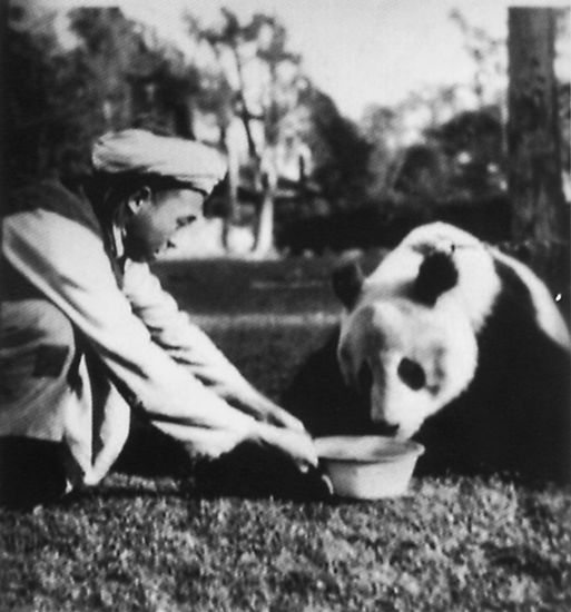 负责此事的华西协合大学生物教授丁克生立即给山里的狩猎人写信。不久丁克生的夫人亲自到四川灌县(现都江堰市)的大山中带回了一只活泼可爱的大熊猫幼仔,宠物般地养在华西坝家中,并为它取名潘多拉。