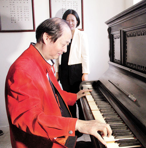 5月9日,著名音乐家赵季平在鲁艺旧址体验当年的钢琴