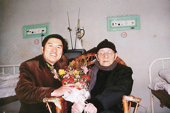 与《天国逆子》生活原型小沈(左)和主演斯琴高娃(中)合影