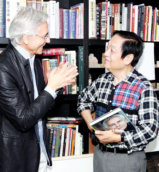交谈中的约翰·诺伊梅尔与韩美林 司廷宏 摄