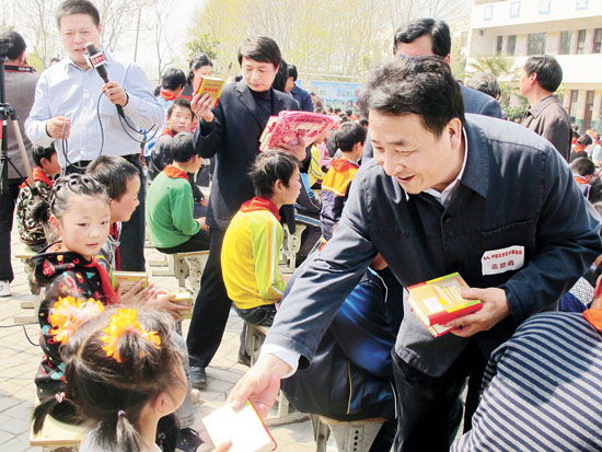 2011年4月14日,中国文学艺术基金会爱心助学字典捐赠系列活动走进河南省新野县王集镇第三中心小学