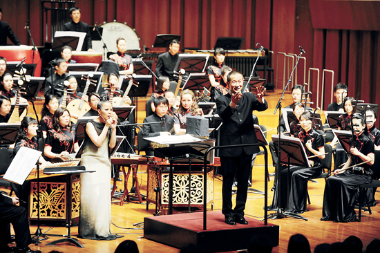 听谭盾亲自指挥自己的作品已不是第一次,而2012年6月8日晚在国家大剧院音乐厅的一场音乐会是感受最深的一次。在这场音乐会上,谭盾与著名歌手朱哲琴、青年二胡演奏家谭蔚以及中国广播民族乐团合作,为首都的观众献上了4首他创作的民族音乐作品,而其中最令人感兴趣的是《人声与12只鸟及民族乐团的即兴》和二胡协奏曲《卧虎藏龙》。