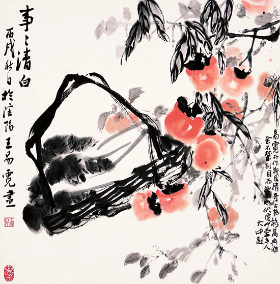 总之,王易霓的写意花鸟画艺术取决于她的创作激情得以持续的长度;取决于她想象世界的天份和诗意情怀。笔墨的质朴美、简洁美和凝炼美会使她的写意花鸟画呈现出艺术的和谐,而作为女性画家的王易霓则在创作中洋溢着一种高贵和崇高。