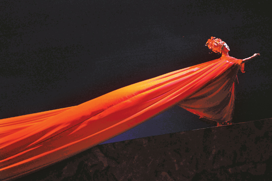 舞剧《马可·波罗》中,中国公主身披红纱走上和亲之路。