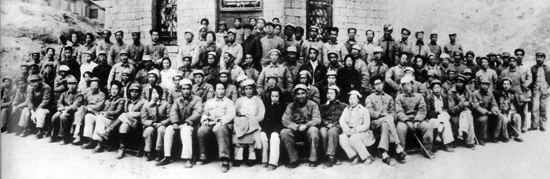 晚饭前,天还亮着。西边天际霞光绚丽,全体到会人员集合,由摄影师吴印咸为大家照合影照。也没有专门排座次,大家入座后,毛泽东面朝大家站着四处张望,问:“丁玲在哪里?”看见丁玲坐在前排靠中的朱老总身边,这才放心地坐下,还笑着开了一句玩笑:“对嘛,照相坐前一点,不要明年再写‘三八节有感’。”那天天气较热,晚上由于来听讲的人增多,屋里坐不下,会议移至“飞机楼”外的院子里,临时支起一盏煤气灯,由毛泽东作总结讲话。院子里的那棵洋槐树正在开花,微风吹来,阵阵飘香。大家的心情一下子畅快兴奋起来。