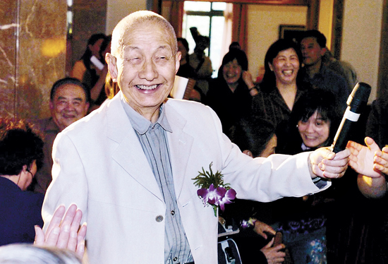 黄宗洛在话剧《茶馆》500场纪念演出前讲话 新华社发