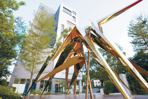 文楼的雕塑作品《风和气逸》与香港浸会大学建筑相得益彰(资料图片)