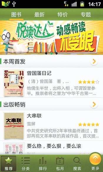 ◎ 电子书携带方便,可以节省印刷、仓储、物料、销售等成本,环保,信息量大。目前电子书最大的问题是盗版,另外,阅读电子书没有阅读传统图书的愉悦感,容易给人造成视觉疲劳和心理疲劳。今后,手机阅读基地还将更进一步优化阅读界面,带给读者更愉悦持久的阅读体验。而任何一个作品传播者,无不希望自己所使用、传播的作品为一手原创。