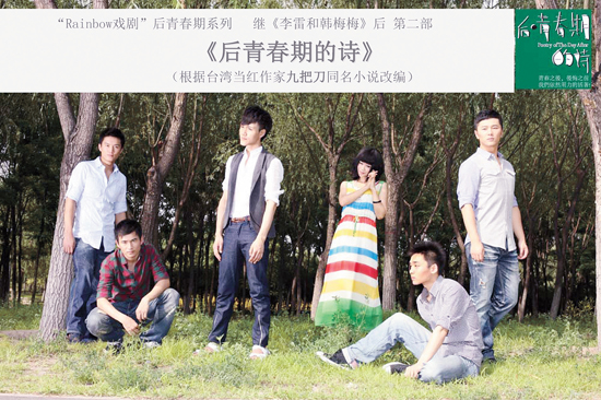 2011年年初,汪鹏飞开始着手做话剧《后青春期的诗》。那时候,九把刀还没有因为电影《那些年,我们一起追的女孩》在大陆走红,该剧导演武雨泽找到汪鹏飞提议能否将《后青春期的诗》改编成话剧时,他还没想好在《李雷和韩梅梅》之后Rainbow戏剧该往哪个方向发展。《后青春期的诗》的立项,也使Rainbow戏剧确立了做后青春系列的目标,主攻青春题材剧。在汪鹏飞看来这也是当时民营话剧市场的一个缺口,“现在的话剧作品,多为搞笑剧、职场和爱情婚姻题材剧,外加比较正统的和先锋的戏剧,青春的、怀旧的、小清新的戏,还没有专门在做的团队”。