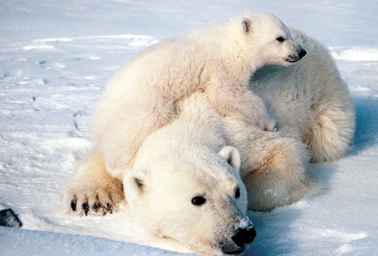 每年冬天,哈德逊湾海面上会结上一层厚厚的冰,北极熊可以和其他在北极地区的动物们一样过着自由的生活:通过呼吸孔猎捕海豹当做食物,扑向海豹的巢穴,在冰层和浮冰上睡觉,在寒冷的冰水中游泳……