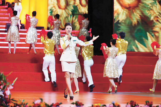 王丽达领唱全体演员合唱《向着太阳歌唱》