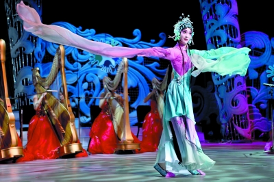 8月12日,第五届中国国际青年艺术周在北京国家大剧院开幕。在主题为“青春的微笑 中外获奖艺术家之夜”的开幕文艺晚会上,百余位来自不同国家以及国内不同民族、并大多在国际国内多种艺术比赛中获奖的优秀青年艺术家们欢聚一堂,合力为观众奉上了一场舞台艺术的视听盛宴。图为演员在表演舞蹈《融合的琴弦》。陈曦 摄