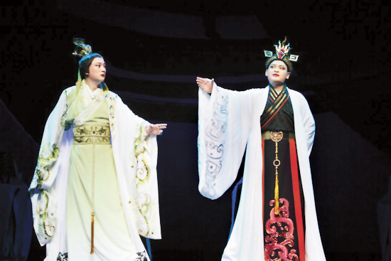 戏剧虽是场上艺术,但必须有文本的支撑。桂剧新编历史剧《七步吟》以曹植的两部经典名著为支点,架构演绎而成。其一是浪漫主义名篇《洛神赋》(即《感甄赋》),其二是五言杰作《七步诗》。前者以超常的想象和浪漫主义的笔法,借助神秘飘忽的梦境,写尽一点痴念,万缕相思。色彩绚丽,意象缤纷,寄托遥深,可与屈原的《九歌》和宋玉的《神女》诸赋相提并论。因而流传千古,艺术魅力经久不衰。后者情采并茂,纯以比兴的手法出之,生动形象、深入浅出地反映了骨肉相残的现实以及诗人自身艰难的处境,充满沉郁愤激的感情,其取譬之妙,用语之巧,令人叹为观止,至今家喻户晓,妇孺皆知。