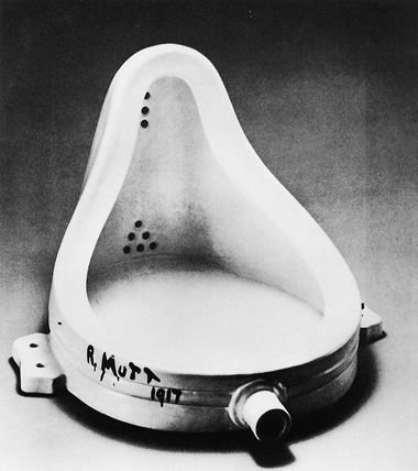 笔者曾看到过一个有趣的错误:在一篇文章里把杜尚这个著名的现成品“作品”的名字说成是“小便器”。其实杜尚的这个“作品”就是一个实实在在的小便器,杜尚恶作剧般的签上“R.Mutt 1917”后就把它拿到美国当年的一个“独立艺术家展览”上去展览。这种行为本身是离经叛道的;其极富创意的地方,还在于他给它起了一个颇有诗意的名字——《泉》。有了这个名字,它就不同于小便器了。