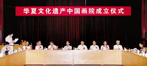 华夏文化遗产中国画院7月29日在北京成立。文化部原副部长潘震宙、文化部华夏文化遗产保护中心主任乔申乾、副主任姜丰义,中国美术馆党委书记游庆桥,著名画家、美术评论家马西光、于志学、夏硕琦、赵俊生、杨留义、林容生等50余人参加了成立仪式。