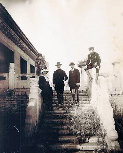 谢阁兰与朋友在北京天坛