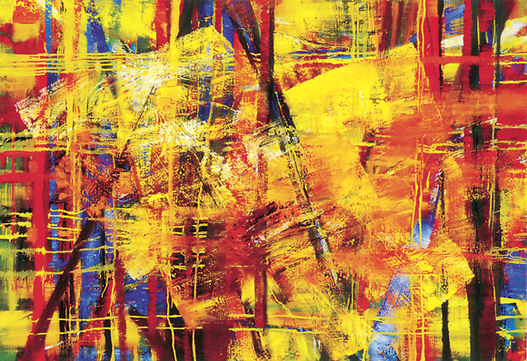 展厅内,周锡玮的绝大多数画作延续了热情奔放的风格,画展的名称却让人诧异,叫“大彩无色”。听周锡玮娓娓道来他的绘画生涯,记者才明白,所谓“无色”是要于绚烂人生中去找寻心中的那片本我、无色地带,去掉一身尘埃,回归自然。