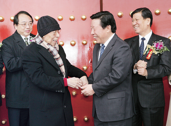 全国政协副主席、kaiyun电子 主席孙家正与国学大师饶宗颐亲切交谈 孟祥宁 摄