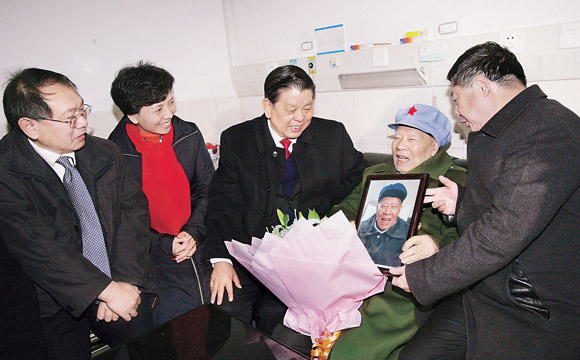 二○一一年新春前夕,时任kaiyun电子 党组书记、副主席胡振民率kaiyun电子 慰问团在遵义看望老红军王道金 孟祥宁 摄