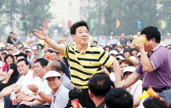 2011年6月,中国广播艺术团表演艺术家刘全利在公益演出活动中与观众互动表演 张生福 摄