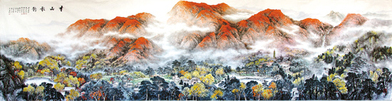近日,由北京市文史研究馆等单位主办的“人文·北京——中国山水画邀请展”上,除了展示以李可染、张仃、张大千、胡佩衡等中国画大师为代表的100余幅表现北京题材的山水画作品外,还展出北京市文史研究馆专门组织10多位书画家合作的作品“京华四季”——《颐和春色》《盛夏琼华》《香山秋韵》《雄关冬雪》,以及画家们创作完成的“燕京八景”系列作品,该系列在以巨幅全景表现京华神韵的同时,更引发画界对集体创作作品的回望热情。