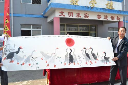 9月7日,在教师节即将来临之际,由中国名家书画总编辑、中国著名画家宋斌同志带领的“中国名家书画笔会慰问团”30多人到民工子弟学校——北京大兴区振华学校慰问振华学校的教师。