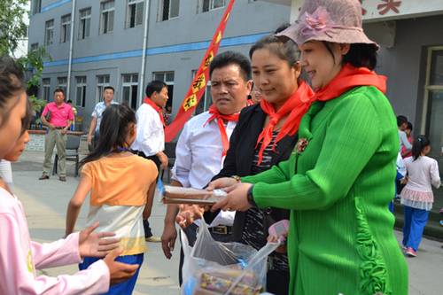 “中国军嫂爱心基金”负责人包淑滨向学生捐赠学习用品