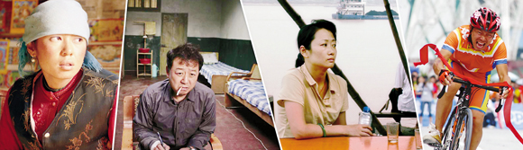 电影《图雅的婚事》《疯狂的石头》《三峡好人》《疯狂的赛车》剧照