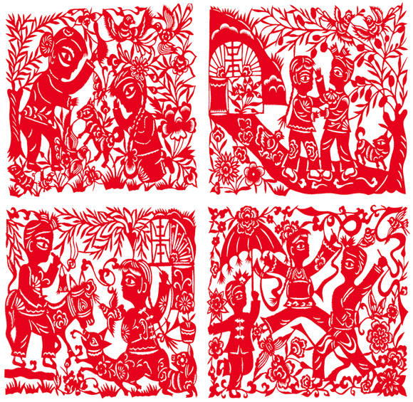 剪纸艺术经国务院批准列入第一批国家级非物质文化遗产名录,因其材料易得、成本低廉、效果立见、适应面广、样式千姿百态、形象普遍生动而受欢迎,在全国各地形成了不同的地方风格流派。