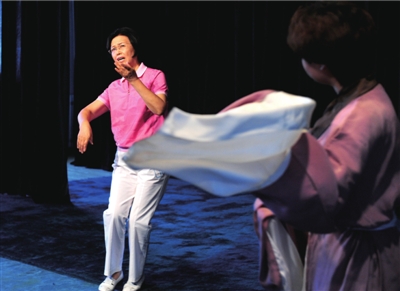 赵葆秀接受京华时报专访时说:“我刚进入戏校的排练场时,对墙上天道酬勤四个字印象特别深,这些年来不断研究老旦艺术,感觉到一个行当要想发展,得自己往前走。”
