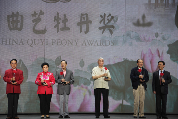 第七届中国曲艺牡丹奖终身成就奖获得者上台领奖