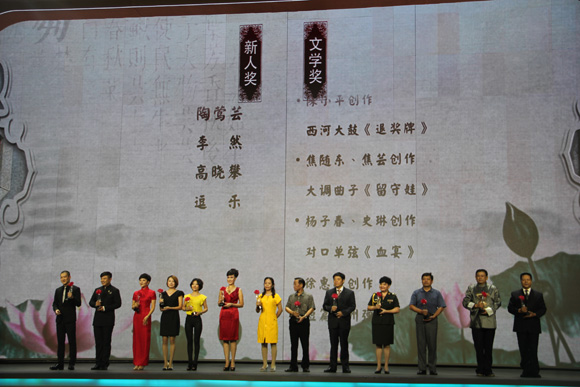 第七届中国曲艺牡丹奖新人奖和文学奖获得者上台领奖