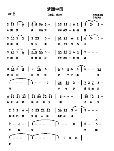 《梦圆中国》是词作家蒋开儒继《春天的故事》《走进新时代》之后的又一力作,被蒋开儒视为“改革开放三部曲”的最后一首,由肖白作曲,晓玲演唱。这部向党的十八大献礼的音乐作品已录制成音乐电视片,将于9月底与观众见面——