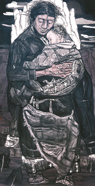 水墨画《天堂》系列艺术特征可以体现在三个方面:一是画家对生命体验和超常性表达;二是画家对藏民族形象尤其是儿童形象的塑造;三是画家对艺术形式的超常性探索,这种探索是氤氲其间的墨气构成了《天堂》外表面特征——玄妙、幽冥。