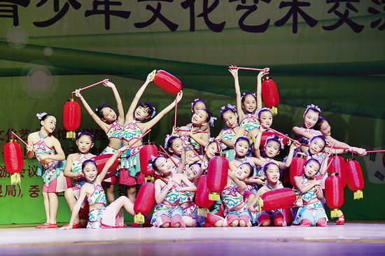 山西省黄河少儿艺术团在第九届中韩青少年文艺交流盛典上表演《红灯笼》