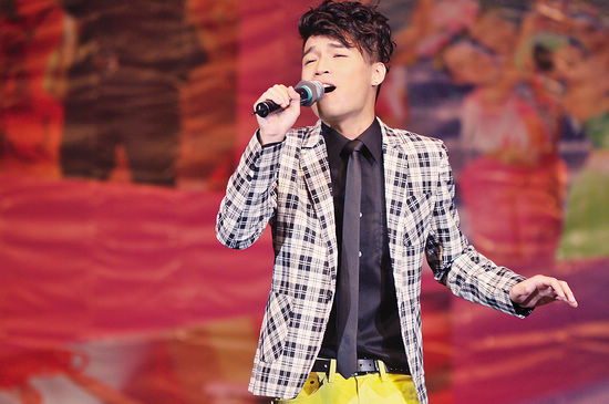 澳门歌手彭永琛在庆祝香港回归十五周年校园综艺盛典上演唱《红旗飘飘》