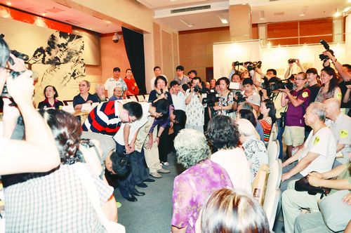 一声熟悉的上课铃让两鬓斑白的学生们变得认真起来,他们坐得端正、一丝不苟,木桌木椅,满墙的教学画稿,让30多名追随李苦禅教授多年的弟子们仿佛重新回到了中央美术学院的课堂,他们的年龄已在70岁上下。讲台上的教师们大多步履蹒跚,他们是中央美术学院原院长徐悲鸿教授的夫人廖静文女士、中央美术学院原副院长侯一民教授、90岁高龄的戴泽教授和邓澍教授以及杨先让教授,他们的平均年龄已接近90岁。这是近日在北京荣宝斋大厦举办的“‘苦禅·大课堂’李苦禅先生书画稿展”开幕现场的真实一幕。开幕式上,七十来岁的老学生们恭敬地向仍然健在的老前辈们鞠躬行礼,年轻的新学生们又向七十来岁的前辈们行了拜师礼,一种文化的传承在展厅内静静地流淌着、弥漫着。