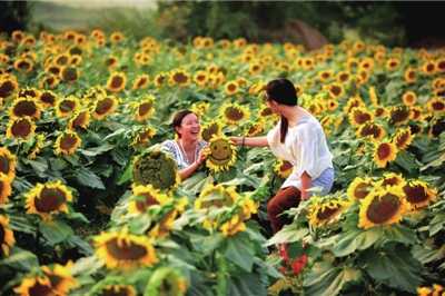 昨天,房山区长沟镇万亩向日葵田开始接待游客。当天,2013国际花田文化季推介会在长沟镇举行,该镇党委书记李仲说,长沟镇计划于2013年启动国际大型产业文化交流活动——“向日葵国际花田文化季”,该镇将以葵花为媒,结盟国际知名城镇,以花田产业链为延伸手段,创建产业模式。据了解,今年长沟向日葵的种植面积比去年扩大了一倍,达到了2万亩。