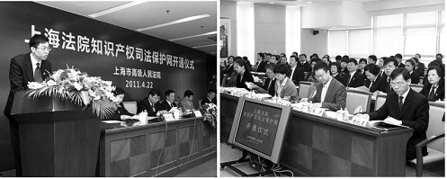 2011年4月22日,上海高院举行了上海法院知识产权司法保护网开通仪式。 孟招祥 摄