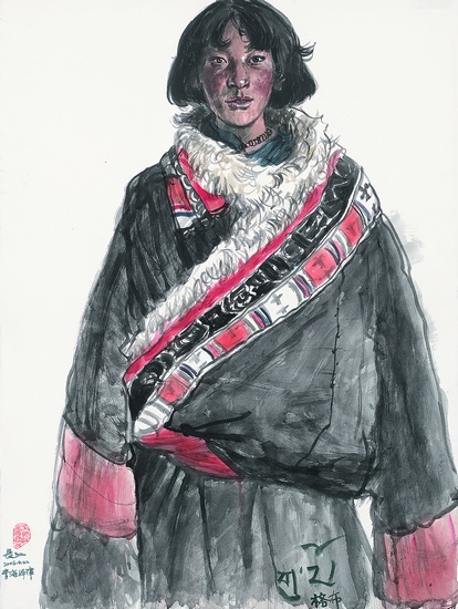 长江是坚持走写实道路的艺术家。他认为,在艺术的长河中,写实的道路并未也不可能穷尽,因为内容无比丰富又在不断变化着的客观世界,给写实艺术提供了取之不竭、用之不尽的资源,因为人们对现实的感知也不断在扩展与深化,由此会不断影响人们的艺术感觉与创造,会赋予写实作品以新的时代感和新的审美趣味。长江的写实功夫是通过几十年的训练不断取得与提高的。除了在学校围墙内的基础训练外,主要是通过在深入生活过程中的写生不断加以完善。长江有自己的“生活基地”,定期到那里去生活,去体验,去画素描、速写,从事艺术创作。他的生活基地是甘肃、青海、四川、西藏高原地带藏族群众居住的地方。他先后去那里有数十次之多。他说:“藏族聚居区高原之旅,每次都有新鲜的感受和体会。”他爱那里的山山水水,说自己“在这雄山壮水之中尽情开怀地感受着大自然的力量和它的神奇”。他更喜爱这里的藏族同胞,他们“没有人为的修饰,率真朴素,充满野性的活力。在他们强悍的外形里饱含着英武的挺拔之美”。长江还在这里的人物与山水情貌中,体会它们蕴含的精神,领悟其内在的意义,从而使自己的心灵世界得到净化与升华。在这个过程中,他越来越清晰地认识到,当前我们的“艺术创作缺少内含的张力和淳厚,最重要的原因是艺术家脱离了对大自然的感悟,缺少了用自己的心灵与自然虔诚对话的勇气所致”。他努力走近这奇妙自然的深处,走向藏胞纯朴的内心世界。他作品涉猎的题材很广,自然景色、生产劳动场面、宗教仪式、民俗节日、寺庙民居……有多至数十人参与、气氛热烈的大场面,也有在茫茫原野中少量的人物与牦牛。他专注于西藏题材不是为了猎奇,也不是出于形式美感的目的,而是为“藏民族精神世界中一种永恒的生命活力”所驱使。他说:“我想通过表现西藏人生活的精神性来揭示人类生存的永恒意义。”他在追寻和发现藏族群众丰富的精神世界奥秘的过程中,也在寻找自己作为艺术家立身的精神之本,并寻找到他表达西藏精神的独特艺术语言。可以这样说,这种语言既从客观世界也从他主观世界中孕育和提炼。客观与主观两者的有机交融,形成一种独特的艺术境界。这是与藏族同胞的人生理想与宗教观念在精神上相对应的语言:对自然的虔诚,对真善美的执著,内容与形式的单纯和质朴。
